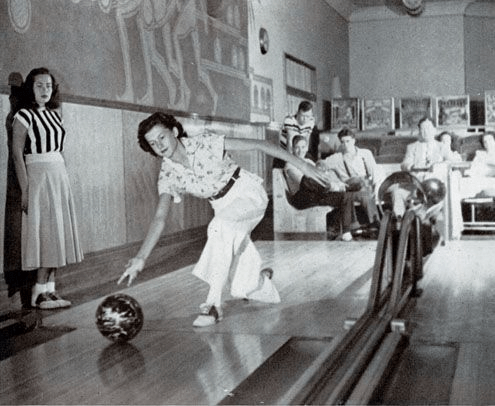 (Not me bowling. She may actually be a good bowler.)